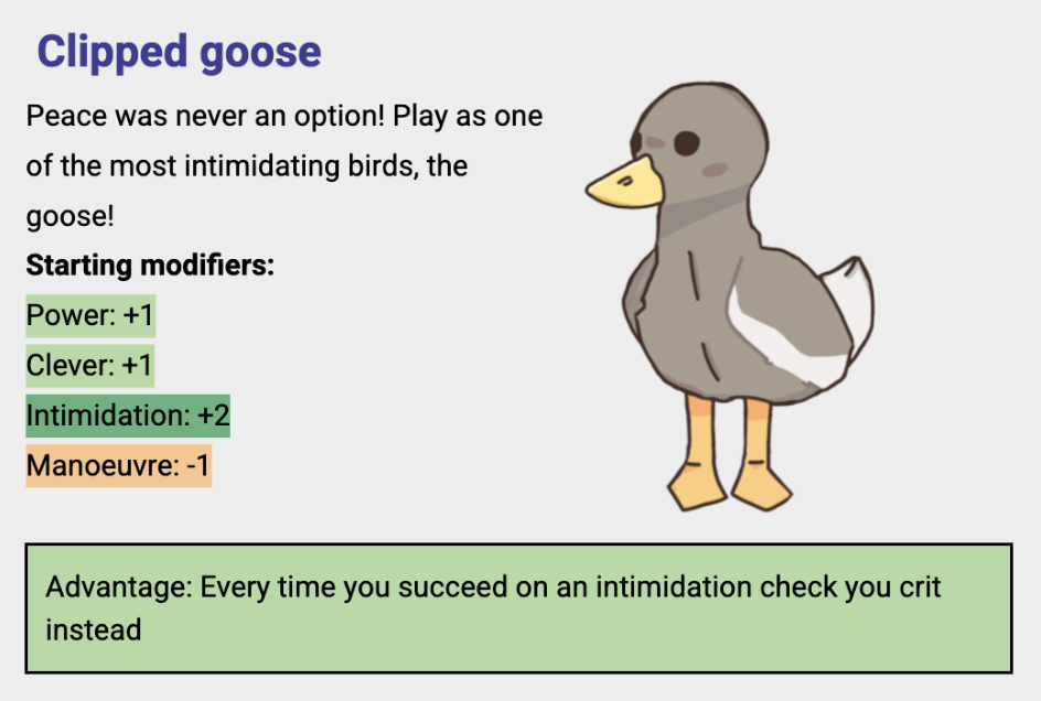 | Tags | birds, Family Friendly, Funny, Indie, No AI, One-page, One-shot, social, Tabletop role-playing game |